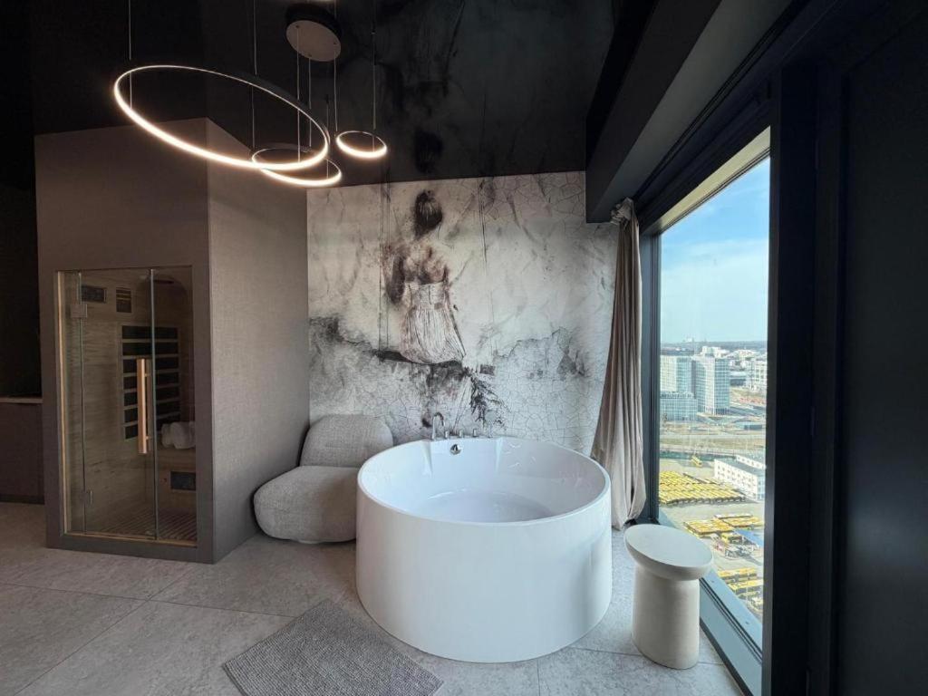Apartament typu Suite z sauną. The sauna is a top feature of this suite. The air-conditioned suite has 1 bedroom and 1 bathroom with a bath and a shower. The well-fitted kitchenette features a stovetop, a refrigerator, kitchenware and an electric kettle. This suite features a dining area, a flat-screen TV and city views. The unit has 1 bed. Apartament typu Suite - 2 osobowy. Powierzchnia pokoju ok.: 35 mkw.